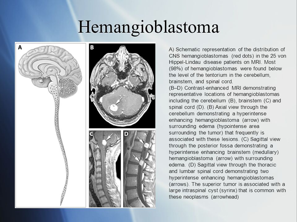 Hemangioblastomas of the central nervous system (CNS) are rare, benign tumors that develop from the blood vessel-forming cells in the b...
