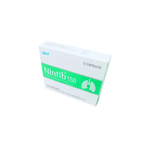 Nintedanib, (Nintib) works for treating idiopathic pulmonary fibrosis (IPF; This disease scars and stiffens your lungs, making it hard to breathe), systemic sclerosis-associated interstitial lung disease, and chronic fibrotic interstitial lung disease. It is also used to treat adenocarcinoma type locally advanced, metastatic or locally recurrent non-small cell lung cancer (NSCLC) in combination with docetaxel in patients who have already received previous treatment with chemotherapy. It’s a doctor prescription (Nintedanib) medicine.