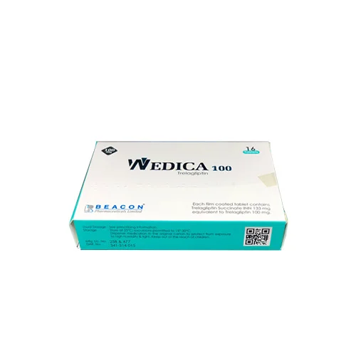Trelagliptin, (Wedica) works for treating once-weekly oral dipeptidyl peptidase-4 (DPP-4) inhibitor, has shown favorable efficacy and safety in type 2 diabetes mellitus patients. Trelagliptin launched in Japan and manufactured in Bangladesh. which is expected to be initially use for switchover from a daily DPP-4 inhibitor in the clinical setting. Thus, the present carry out to explore the efficacy and safety of trelagliptin after a daily DPP-4 inhibitor was switched to it. It’s a doctor prescription (Trelagliptin) medicine.